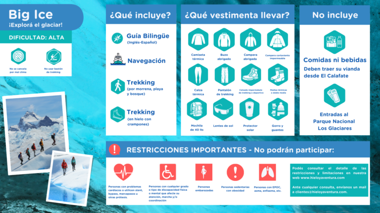 - No incluye la entrada al PARQUE NACIONAL LOS GLACIARES