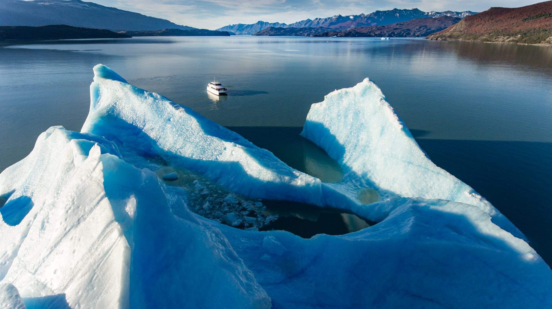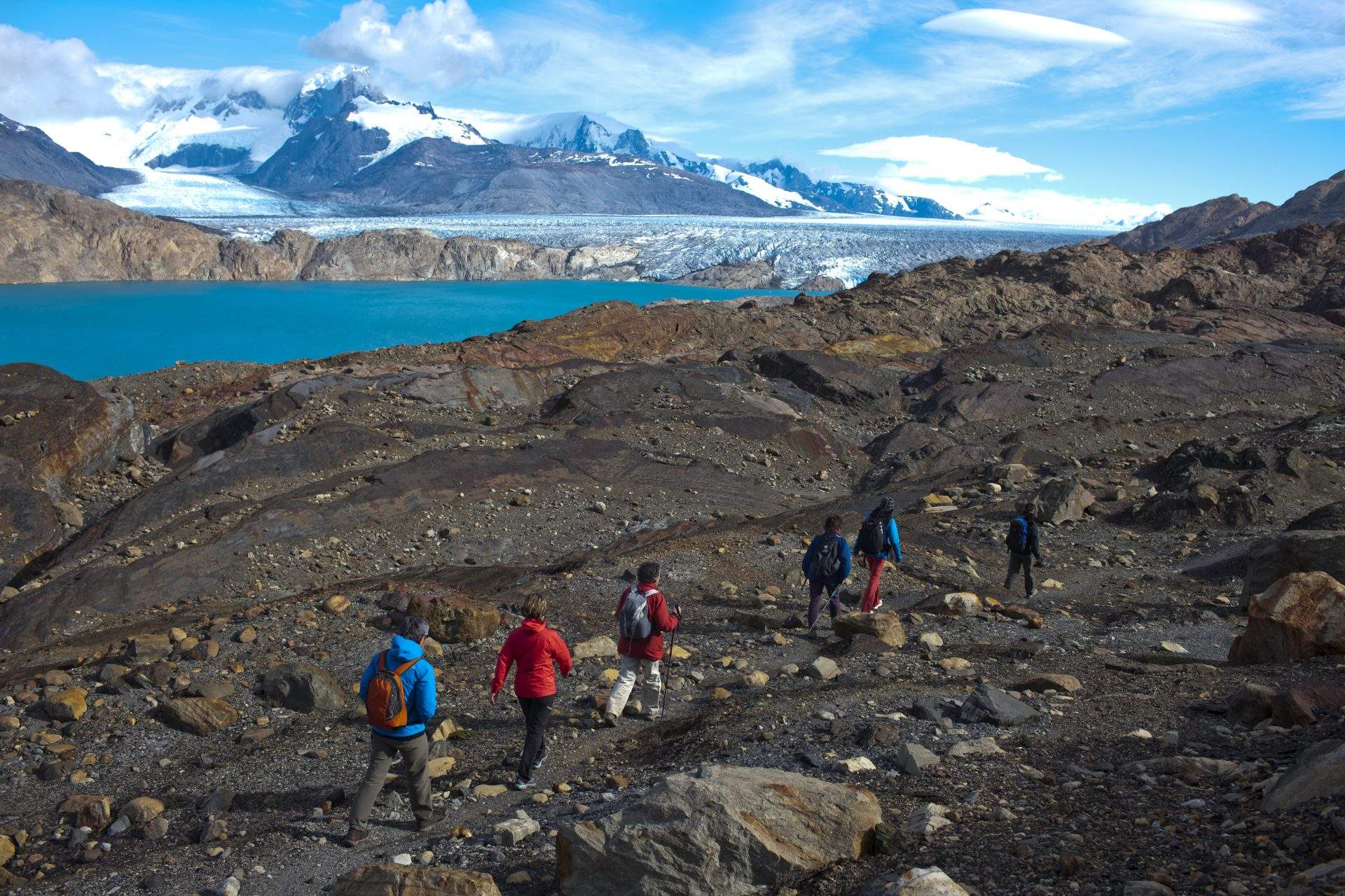 Al salir del puerto de Punta Bandera a las 9:00 se comienza a navegar por Brazo Norte del Lago Argentino para llegar al límite permitido de navegación en el Canal Upsala, y así tener una vista panorámica del frente del Glaciar homónimo. Luego de desembarcar en Estancia Cristina, se le asignará al reducido grupo que realizará el TREKKING, un vehículo 4×4 con un guía especializado.