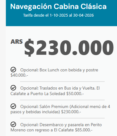 Opcional: Traslados en Bus ida y Vuelta. El Calafate a Puerto La Soledad $50.000.-