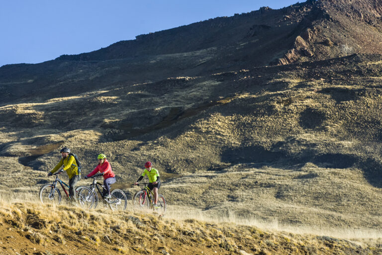 Pasamos a buscarlos por su hotel o punto de encuentro. Salimos de El Calafate en vehículos 4×4 en dirección Sur, por el valle del arroyo Calafate. Después de un ascenso de 15 km, llegamos hasta La Sección de Estancia 25 de Mayo, donde nos esperan las bicicletas MTB. Luego de la charla técnica, partimos en bicicletas a una excursión que nos permitirá avistar una amplia variedad de fauna: guanacos, zorros, choikes, cóndores y águilas.
